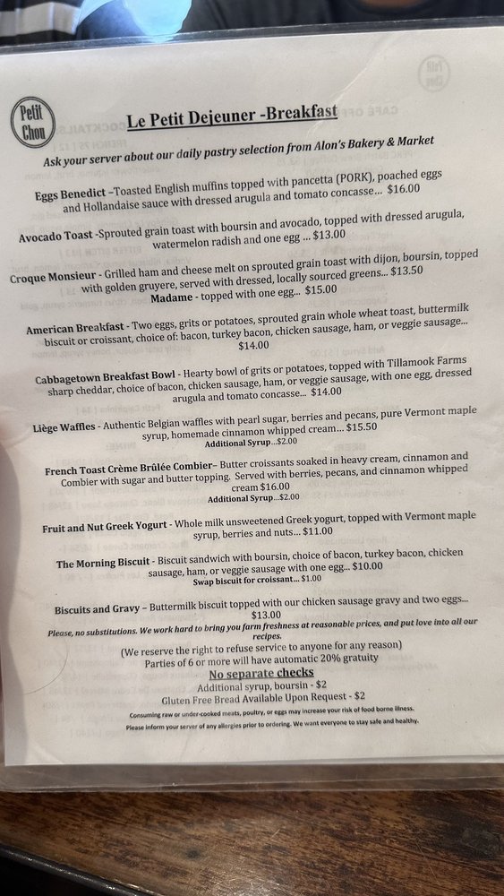 Overall, Petit Chou offers a memorable dining experience with great service, delicious food, and a charming atmosphere. Whether you're looking for a casual brunch spot or a special dinner location, Petit Chou has something for everyone.